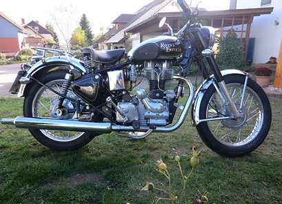 Neu hinzugekommen ist Ende 2016 ein Klassiker als Zweitmotorrad, eine Royal Enfield Bullet 500, Bj. 2006 (letzte Vergaserversion, seit 1955 nahezu unverändert gebaut).